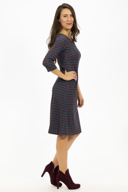 Das Kleid FIONA ist ein unkompliziertes Kleid für jeden Anlass. Es wird sicher Dein neues Winter-Lieblingskleid! Blickfang ist der wattierte, kleine Stehkragen und die dekorative Paspel unter der Brust. Die Taille wird dadurch optisch nach oben gerückt, was sich sehr positiv auf die Proportionen auswirkt. Die Figur wird gestreckt und die Taille wird umspielt. Die Silhouette hat eine leichte A-Linie was es besonders komfortabel macht. Der lange Ärmel und der schöne Stehkragen machen unsere FIONA absolut wintertauglich.