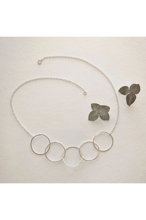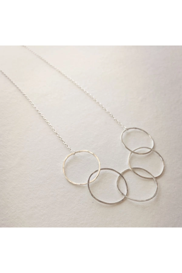 Moderne Halskette aus gemischtem Metall. Die Marquise-Reifen aus Sterlingsilber sind mit Golddraht umwickelt. Unsere Creolen werden in unserem Schmuckstudio in New Orleans von Hand gefertigt, gehämmert und poliert. Der Anhänger ist ca. 1,25 Zoll lang. Die Kette ist 45,7 cm lang und hat einen Federringverschluss. Metalle aus Sterlingsilber, vergoldet oder verdrahtet. ✹ Die Reifen werden in unserem Schmuckstudio in New Orleans von Hand geformt, gelötet, gefeilt, gehämmert und poliert.