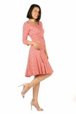 Schwingendes Tanzkleid Sabina mit langem Arm in Rot, von Vorne