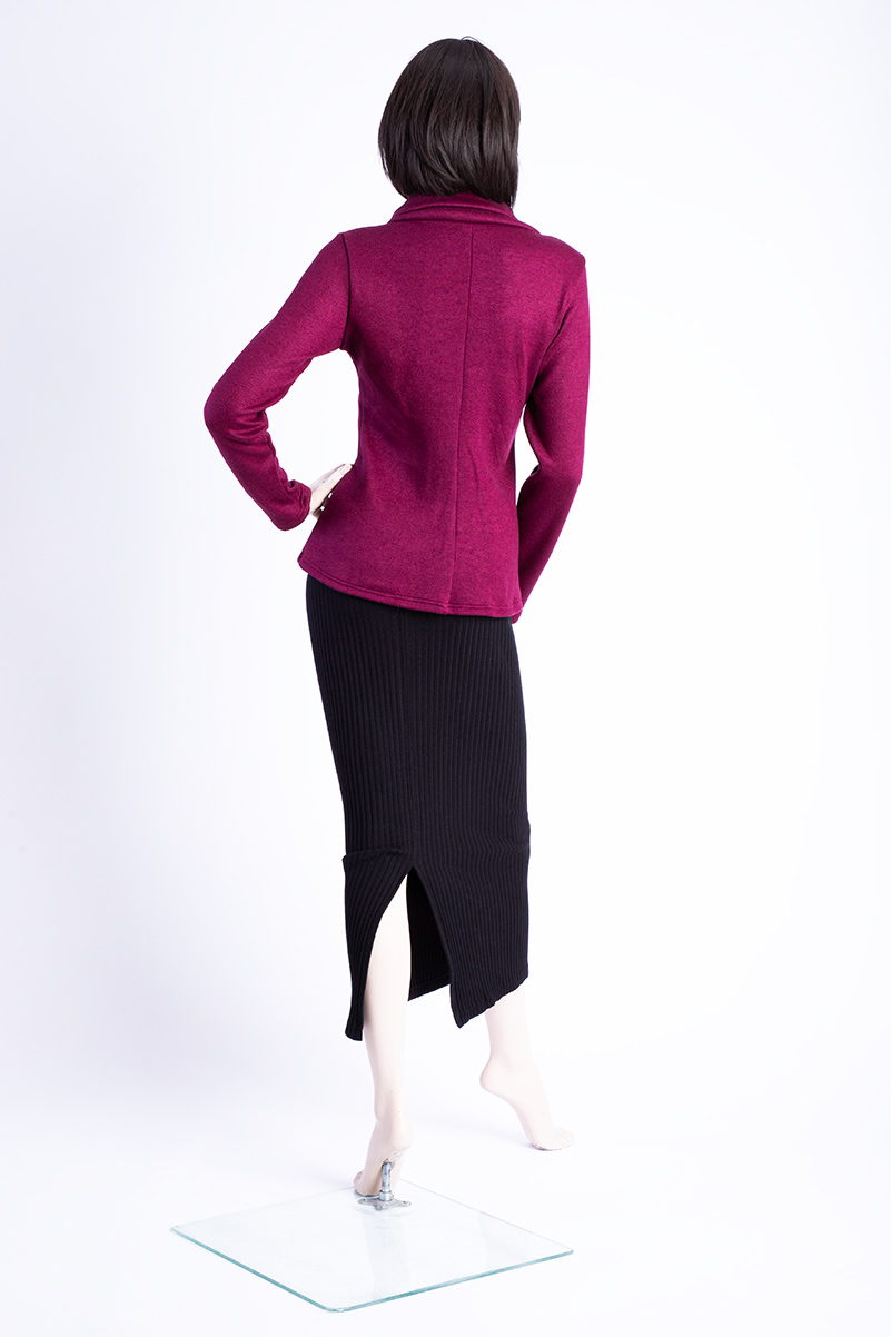 Der figurbetonte Strickrock ZOE ist ein vielseitiges Lieblingsstück für Frauen, die Stil und Komfort gleichermaßen schätzen. Aus elastischem Rippenstrick gefertigt, schmiegt sich der Rock angenehm an und betont die Figur, ohne einzuengen. Der schmale Schnitt mit nur einer Naht sorgt für eine glatte Silhouette, während der Rückenschlitzdezente Bewegungsfreiheit und einen femininen Akzent verleiht.